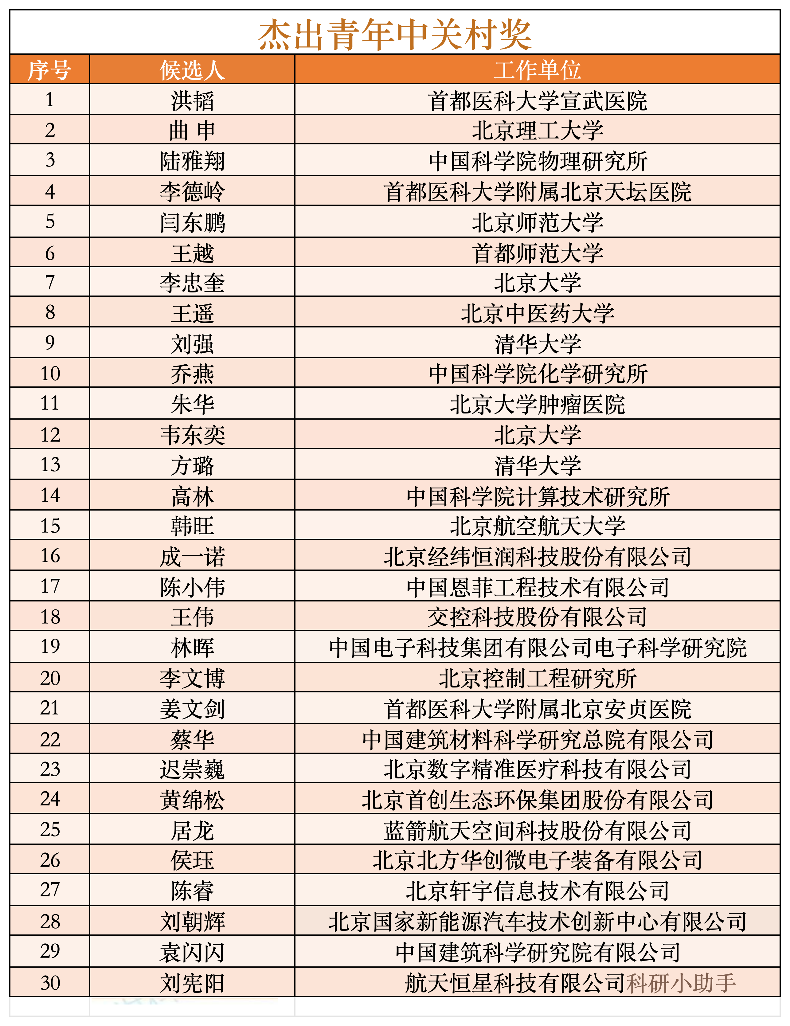 2025年度北京市科学技术奖杰出青年中关村奖评审结果正式公示。协会副理事长刘朝辉入选.