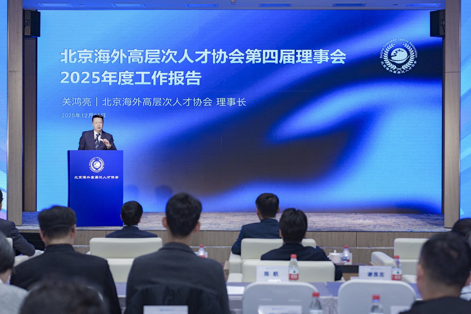 2025年12月21日,在北京市委组织部、市人才工作局指导下,北京海外学人中心和北京市西城区支持下,北京海外高层次人才协会第四届会员代表大会第四次会议在北京金融科技中心成功召开。会议回顾总结了过去一年北京海外高层次人才协会(以下简称“协会”)的工作成效,谋划部署了2026年发展蓝图。