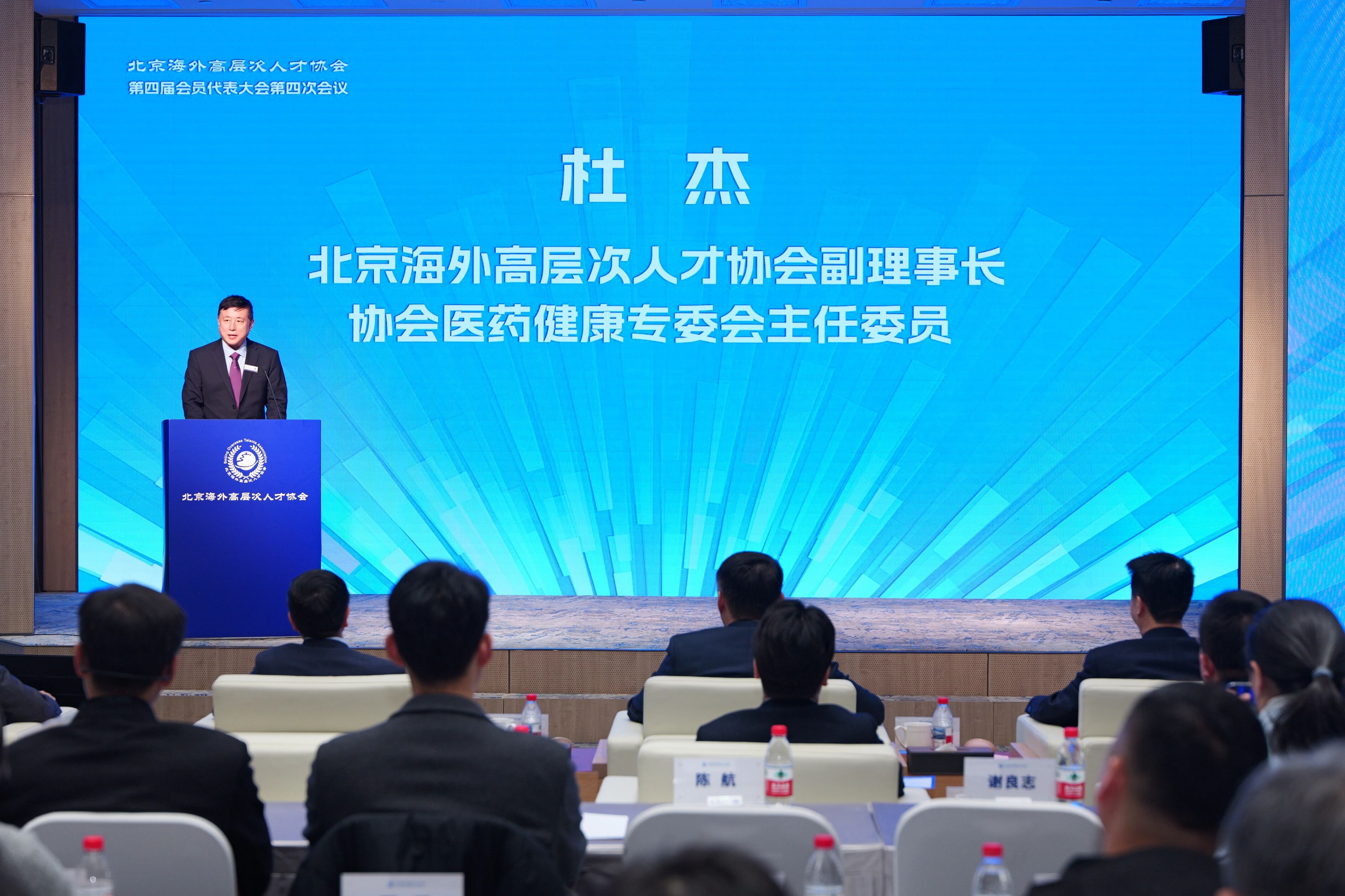 在专题报告环节,北京海外高层次人才协会副理事长、协会医药健康专委会主任委员杜杰向大会汇报了年度工作进展。作为协会在垂直领域深耕的重要组成部分,医药健康专委会在过去一年紧密围绕首都生物医药与大健康产业发展需求,积极发挥平台纽带作用,成功促进了多项前沿科研成果与北京本土医疗机构的对话与合作,助力北京国际科技创新中心在生命健康领域构建更开放的创新生态。