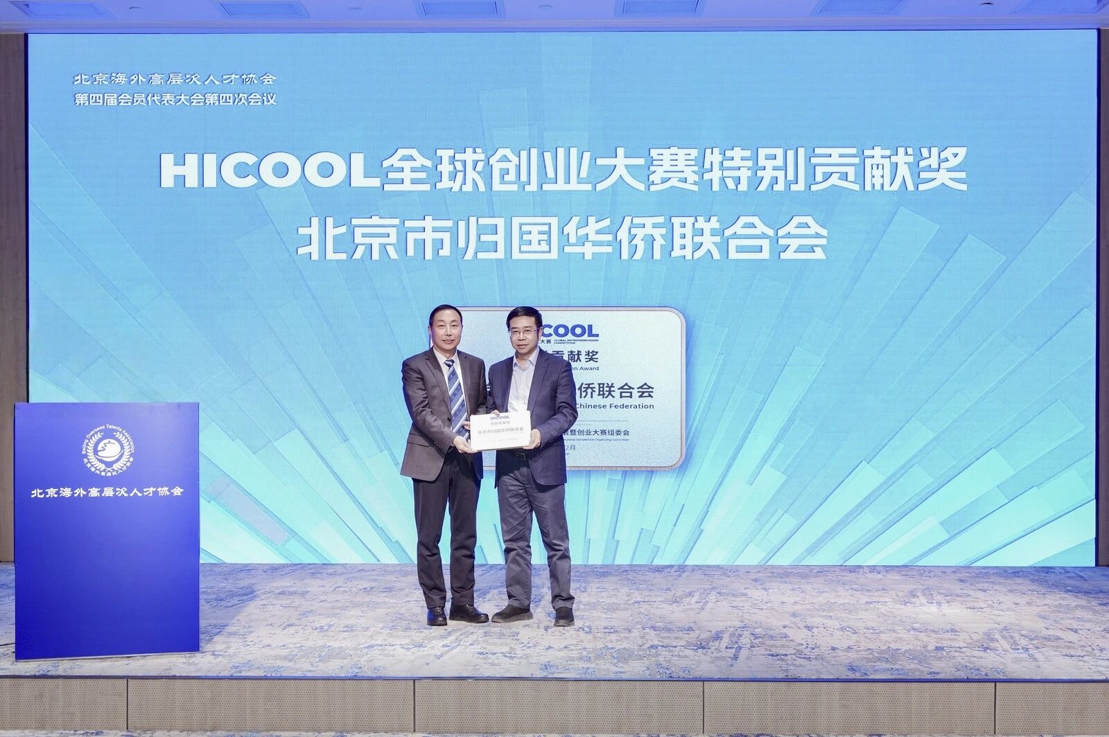 为感谢北京市侨联对HICOOL全球创业大赛及北京引才聚才事业的长期支持,大会现场举行了“HICOOL全球创业大赛特别贡献奖”颁授仪式。北京海外学人中心党委书记、主任虎翼雄代表HICOOL全球创业者峰会暨创业大赛组委会颁奖,北京市侨联党组副书记、副主席李登新代表市侨联上台领奖。